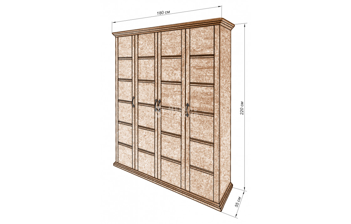 Шкаф Бали 4-х ств. из экологически чистой натуральной древесины. Товар представлен в четырёх вариантах исполнения из древесины на выбор: сосна, берёза, бук или дуб. Широкий выбор вариантов покраски позволяет органично вписаться в любой интерьер. Отличается износостойкостью, надёжностью, лаконичным дизайном. Приобретайте изделие по лучшей цене с доставкой на дом в интернет-магазине «Мебель Массив». Доставка по Кемерово и Кемеровской области.| Размер | Цена | |