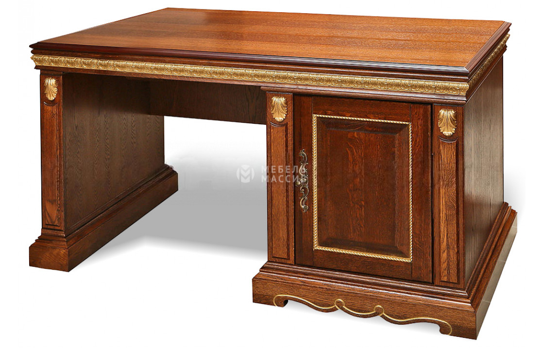 Письменный стол из коллекции Милано с одной тумбой – классическая модель, предназначенная для оформления рабочего пространства дома либо в офисе. Данное изделие обладает роскошным дизайном с контрастными золотистыми вставками и элементами, которые выигрышно выглядят при любом цвете корпуса. Для изготовления стола используется натуральный массив дерева. Он является экологически чистым сырьем, отлично справляется с нагрузками и влиянию внешних факторов, что положительно сказывается на продолжительности эксплуатации. Доставка по Кемерово и Кемеровской области.| Размер | Цена | |